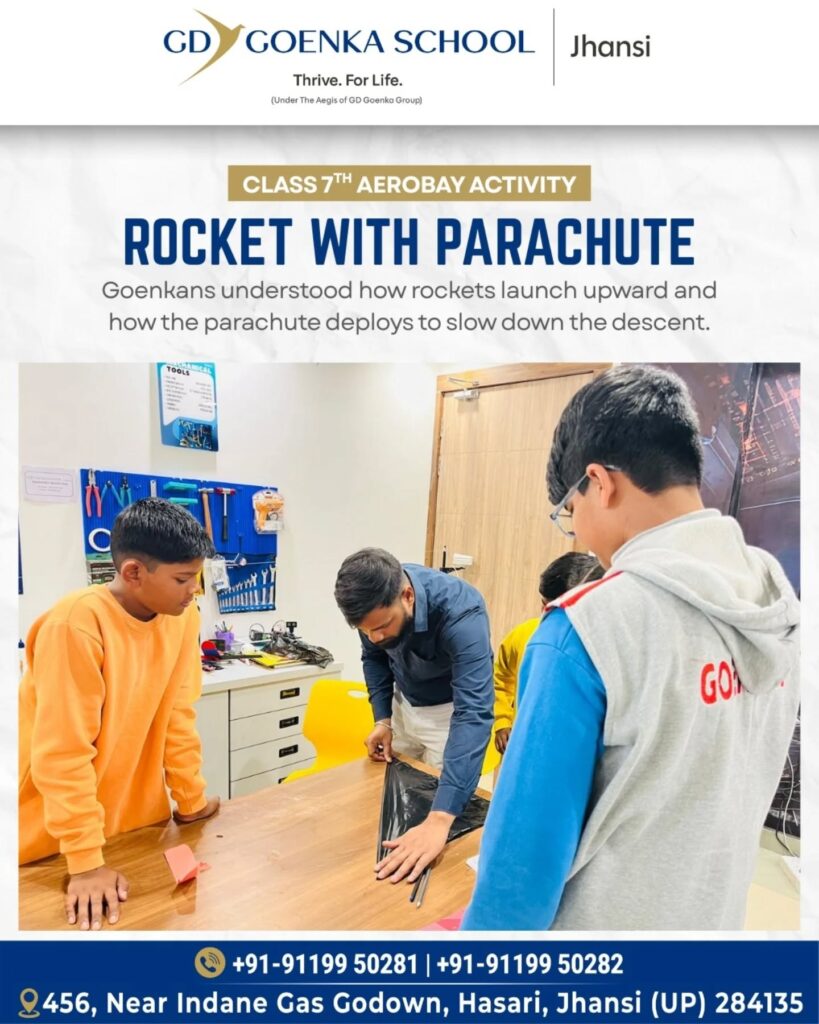 Our young innovators explored the science behind a Rocket with Parachute in an exciting hands-on Aerobay Activity! From understanding thrust and lift to witnessing how parachutes slow down descent, learning truly went beyond textbooks.