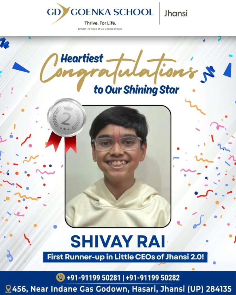 We are immensely proud and overjoyed to announce that Shivay Rai of Grade – VI, has secured the First Runner-up position in Little CEOs of Jhansi 2.0!